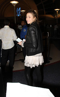 The “City” chick looked cute and casual as she strolled through the terminal prior to her flight back to New York City.